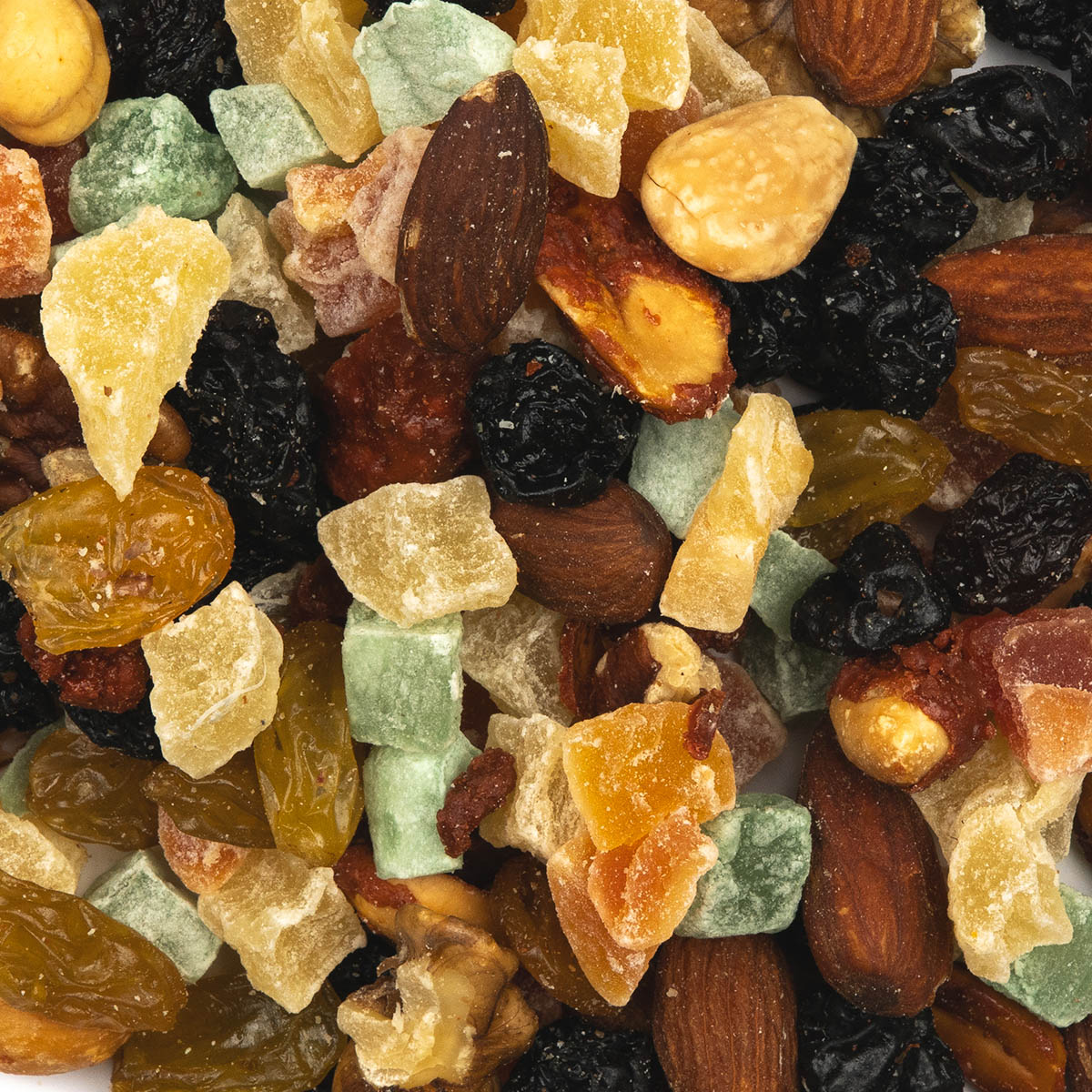 Mix van gemengde noten, rozijnen, vruchten en suikerpinda’s